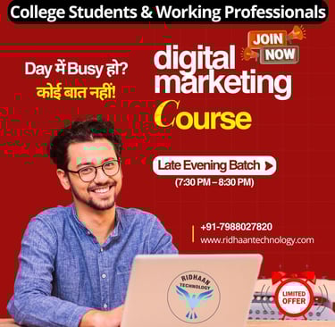 Ridhaan Technology offers professional digital marketing services, also providing digital marketing courses both offline and online in Dehradun. Helping students and professionals build successful careers in the digital world. Learn from industry experts with 15+ years of experience and gain practical skills to grow your brand or business online.