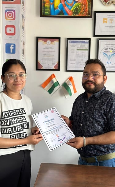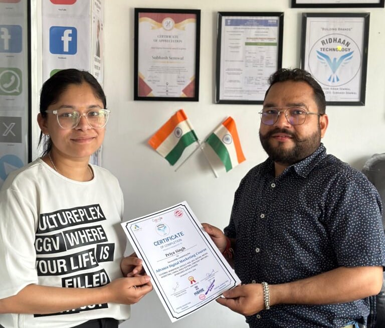 Ridhaan Technology offers professional digital marketing services, also providing digital marketing courses both offline and online in Dehradun. Helping students and professionals build successful careers in the digital world. Learn from industry experts with 15+ years of experience and gain practical skills to grow your brand or business online.